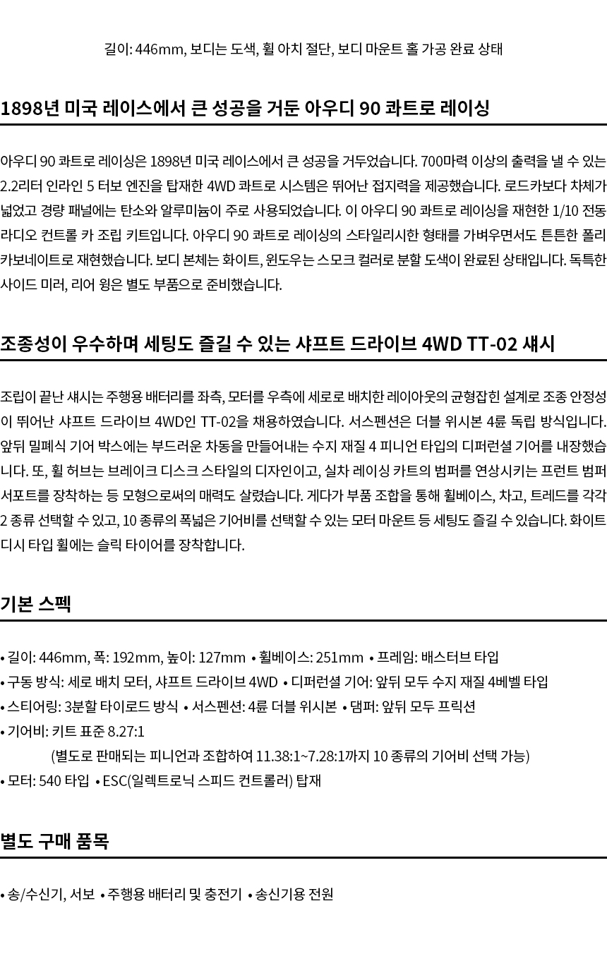 | 품명 및 모델명 | TAMIYA REMOTE CONTROL KITS SERIES | ||