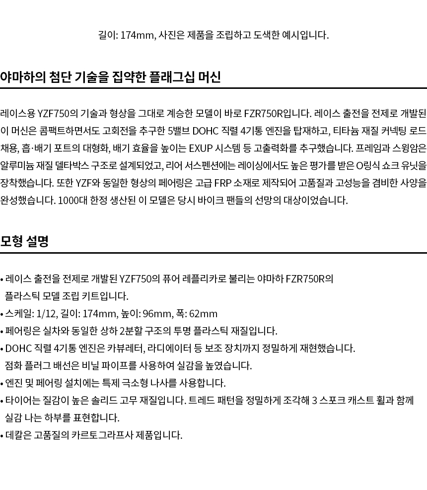 [14058] 1/12 Yamaha FZR750R (OW01) 49,400원 / 배송비 : 3,000원