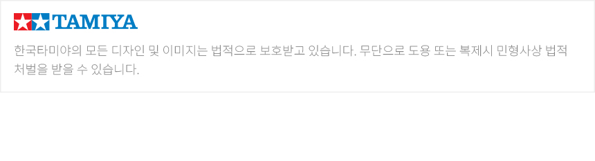 - (주)한국타미야는 TAMIYA / ITALERI S.p.A.의 대한민국 공식 수입 회사입니다.